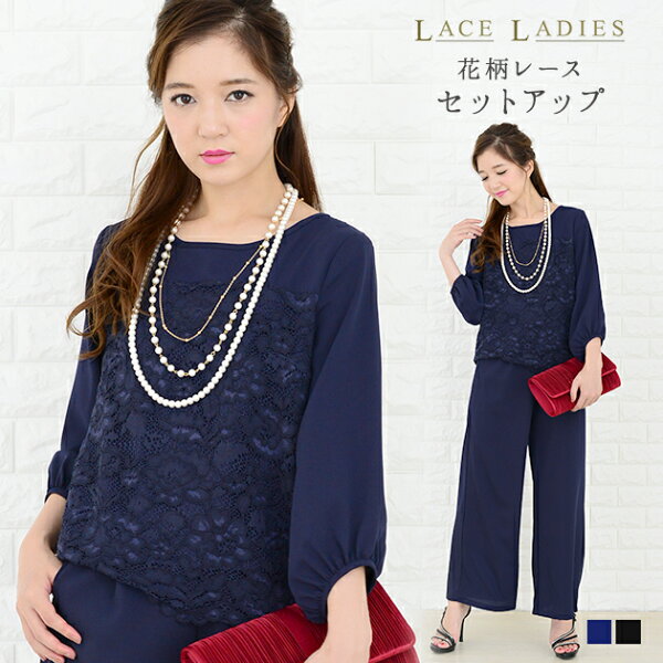 ・大人可愛い切り替えレース トップスは胸元から花柄レースがレイヤー状に広がり、落ち着きがありながらも可愛らしさを演出。