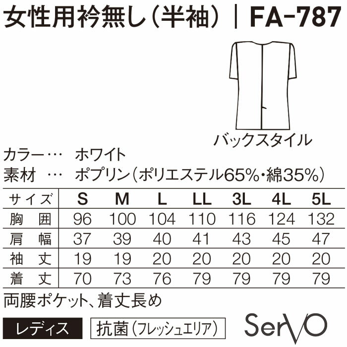 ■品名・品番 レディース半袖横掛白衣(ホワイト),FA787 ■カラー ホワイト ■サイズ S M L LL 3L 4L 5L サイズ表(仕上り寸法) メーカー基本ヌード寸法 ■素材 ポプリン/フレッシュエリア加工/ポリエステル65%+綿35% ■機能・特徴 抗菌 ■仕様 両腰外ポケット 着丈長め ■着用シーズン オールシーズン ■同シリーズ レディース長袖横掛白衣(ホワイト) FA785 ■メーカー・ブランド Servo(サーヴォ) [旧]SUNPEX IST(サンペックスイスト) お届け情報 メーカーお取り寄せの商品です。